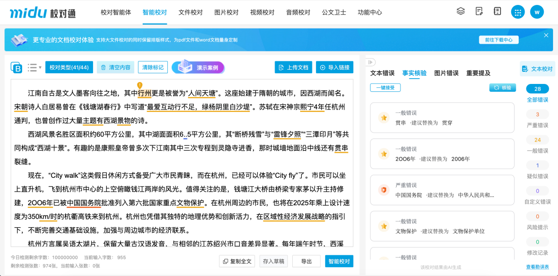 “人工智能+”海潮奔涌向前,同时,最新的V4.0版相较根本校对阶段已实现了全方位的能力跃升。蜜度针对根本校对能力进行针对性优化。